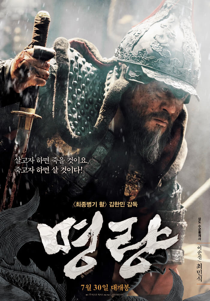 영화 '최종병기 활'을 만든 김한민 감독이 만들어 2014년에 국내 개봉한 영화다. 박은우 작가의 소설 '명량'을 원작으로 하고 있다. 영화는 이순신 장군의 명량 해전 전투를 다루고 있다. 영화 개봉 전 김한민, 전철홍, 김호경 세 사람은 공동으로 소설 '명량'을 출간하기도 했다. 언론 시사회 때 다소 지루하다는 평가도 있었다. 포커스가 너무 이순신 배역을 맡은 주연배우에게 집중되다 보니 주변인 역할에 대한 아쉬움을 드러내기도 했다. 명량을 말할 때 흥행기록을 빼놓을 수 없다. 1,761만 명으로 역대 국내에서 최고 관객수를 보유하고 있다. 개봉당시 압도적 예매율을 달성했는데 국민의 반일감정이 예민했던 시기 일본과 관련 있고 대한민국이 좋아하는 이순신과 임진왜란이라는 소재는 재미보다는 역사 콘텐츠로 바라보는 시선도 있었다. 당시 대한민국 대통령도 직접 표를 구입해 영화를 관람했고 이보다 더 좋은 마케팅은 없었다. 국민들의 애국심에 불을 지폈고 너도 나도 가족과 친구들 할 것 없이 전 세대가 극장으로 향했다. 10대들의 만족도가 가장 높은 것은 어린 청소년들도 적지 않게 영화를 보았다는 근거로 보인다. 지금도 국내 최고 관객수 기록은 깨지지 않고 있다.
